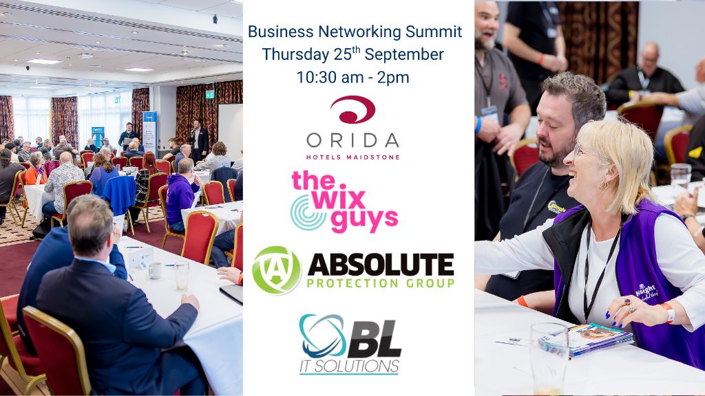 The success of our April event has led to requests from members and guests for more events with 100 attendees. Our Sponsors for this event are currently Lewis MacKay - Orida Hotels Maidstone, Karl Cowell - The Wix Guys, Dave McKeown - Absolute Protection Group, Ben Leach - BL IT Solutions and Chris Henry Photography will be our Photographer for the event.